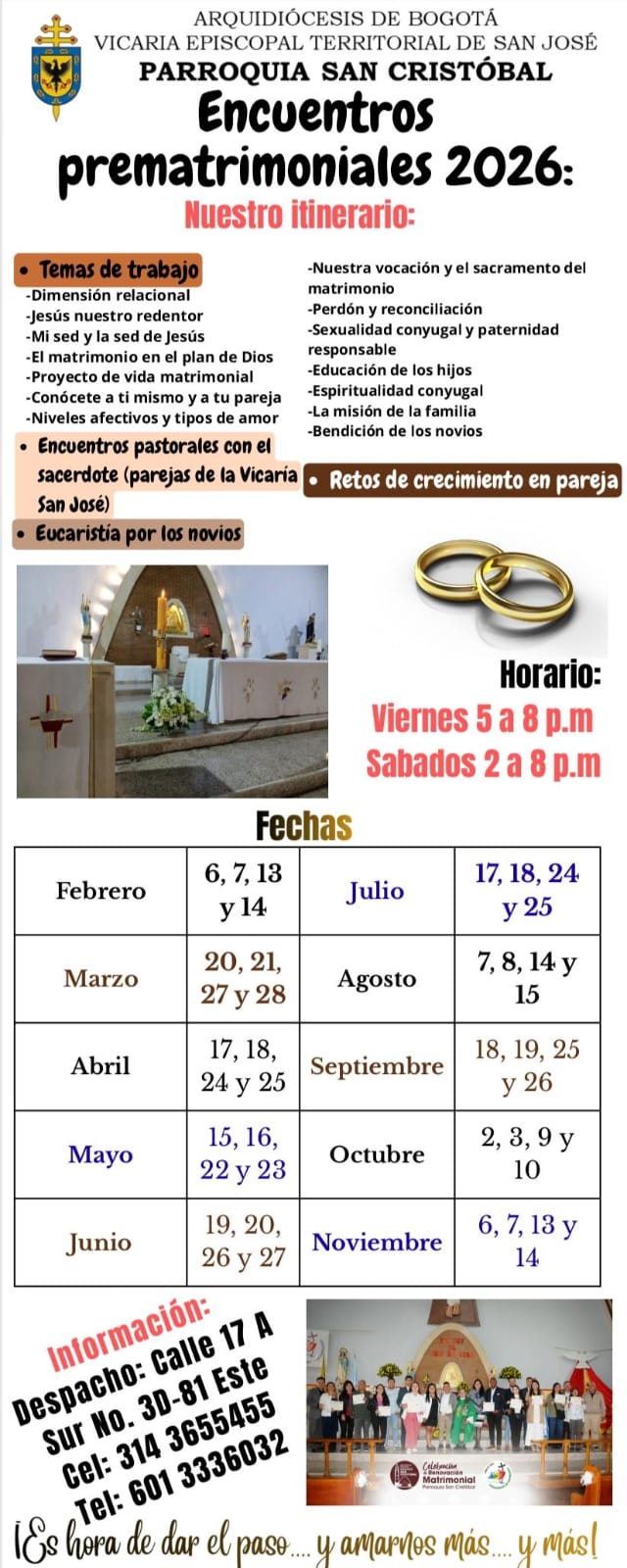 PROGRAMACIÓN DE LOS ENCUENTROS PREMATRIMONIALES AÑO 2026