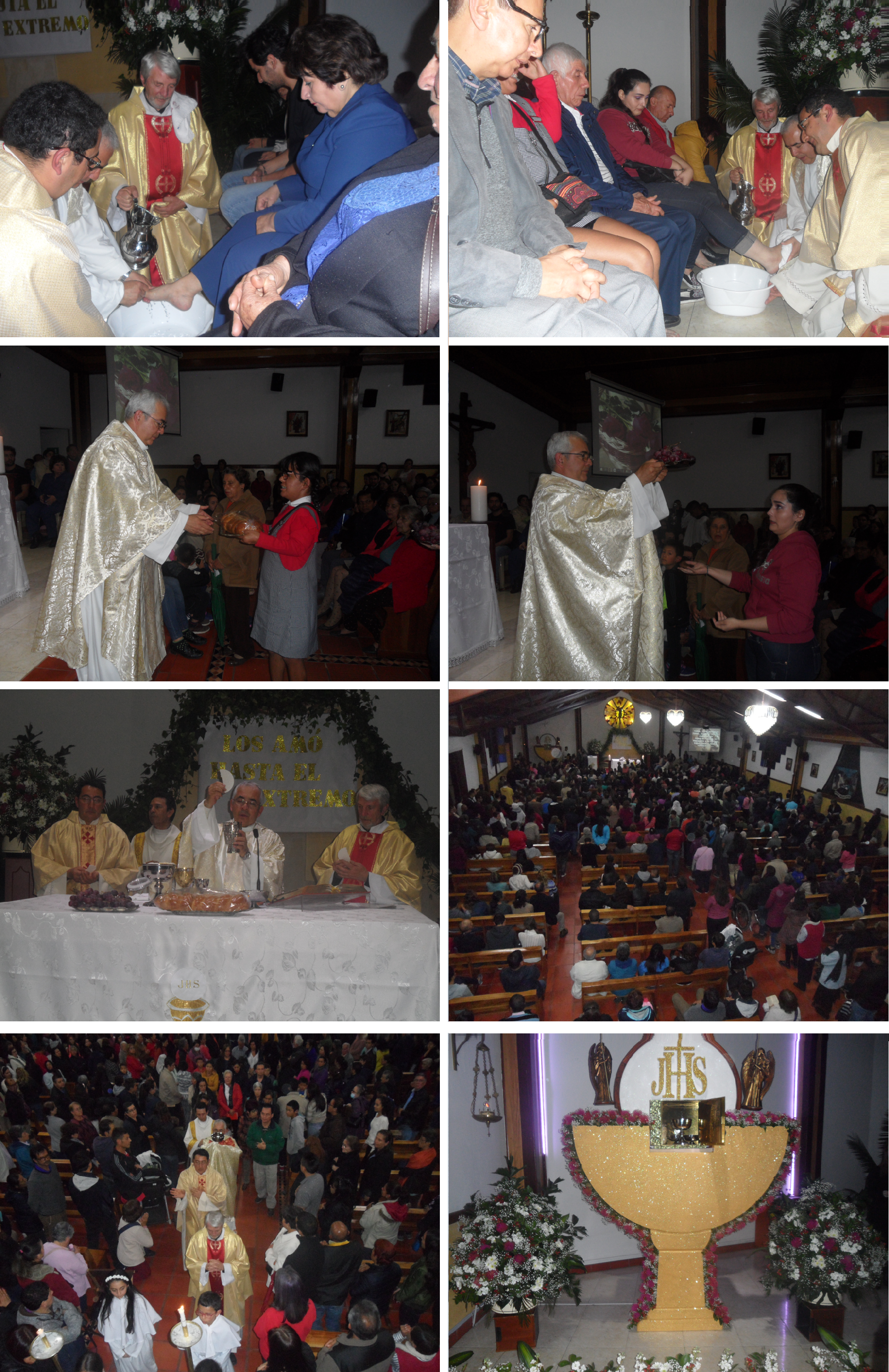 Jesús, en la vigilia de su pasión, ofreció al Padre su Cuerpo y su Sangre bajo las formas del pan y del vino y, donándolos como alimento a los apóstoles, les ordenó que perpetuaran la ofrenda en su memoria. El Evangelio de esta celebración, recordando el lavatorio de los pies, expresa el mismo significado de la Eucaristía bajo otra perspectiva. Jesús, como un siervo, lava los pies de Simón Pedro y de los otros once discípulos. Los sacerdotes: Padre Luis María Carreño (párroco), el padre José Luis Madero (vicario parroquial), el padre provincial de los religiosos somascos el Pbro. Antonio Formeti y el diácono permanente Luis Alfonso Ferrucho, hicieron el mismo gesto y lavaron los pies a doce fieles de la Parroquia.