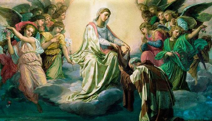 Cierto día San Simón Stock, superior de los carmelitas, imploraba por una intervención divina en defensa de los diversos ataques que recibía la orden. En su oración suplicante llamó a la Madre de Dios como “la flor del Carmelo” y la “Estrella del Mar”. La Virgen fue en su auxilio y se le apareció con el escapulario para los carmelitas.