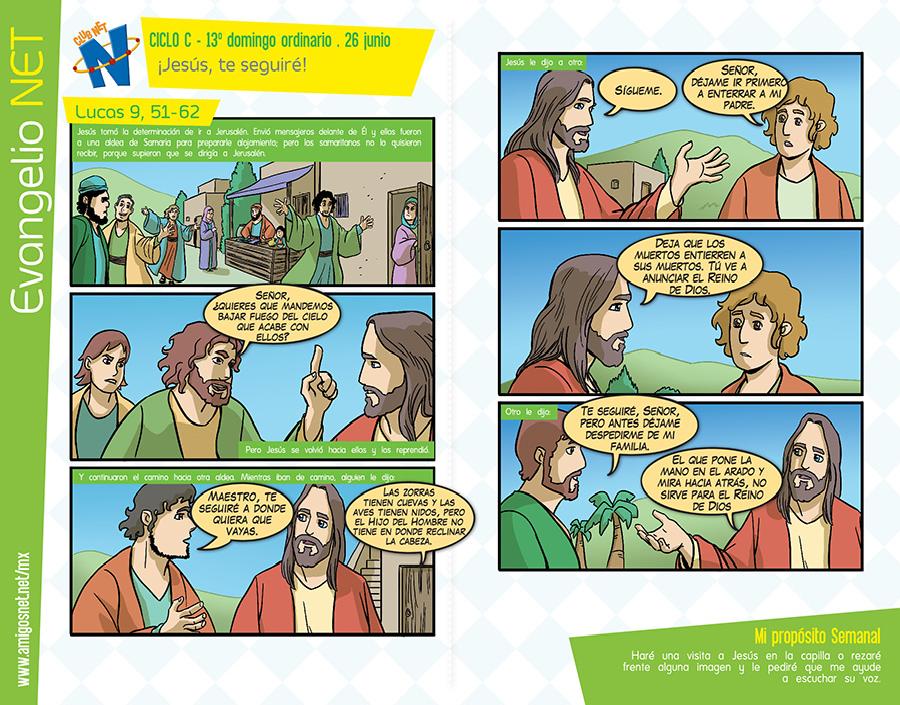 Lucas 9, 51, 62 para niños. Sigamos a Jesús.