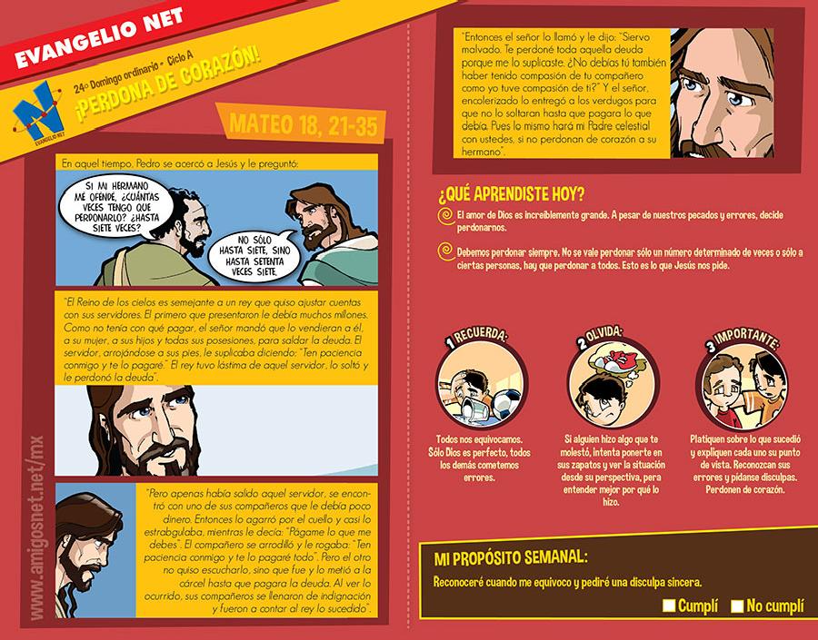 EVANGELIO ILUSTRADO PARA NIÑOS. Hoy Jesús nos enseña que el perdón es un actor de misericordia que poco a poco nos va a cercando a Dios Padre y trae