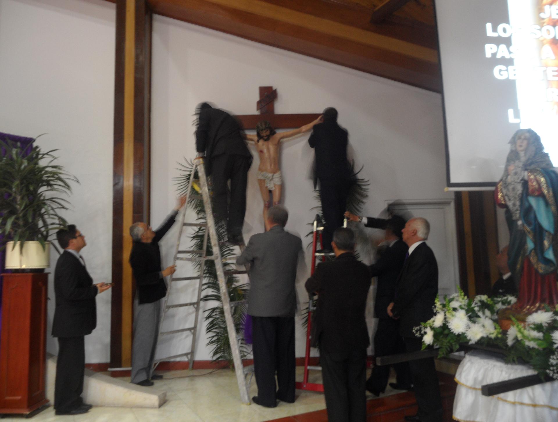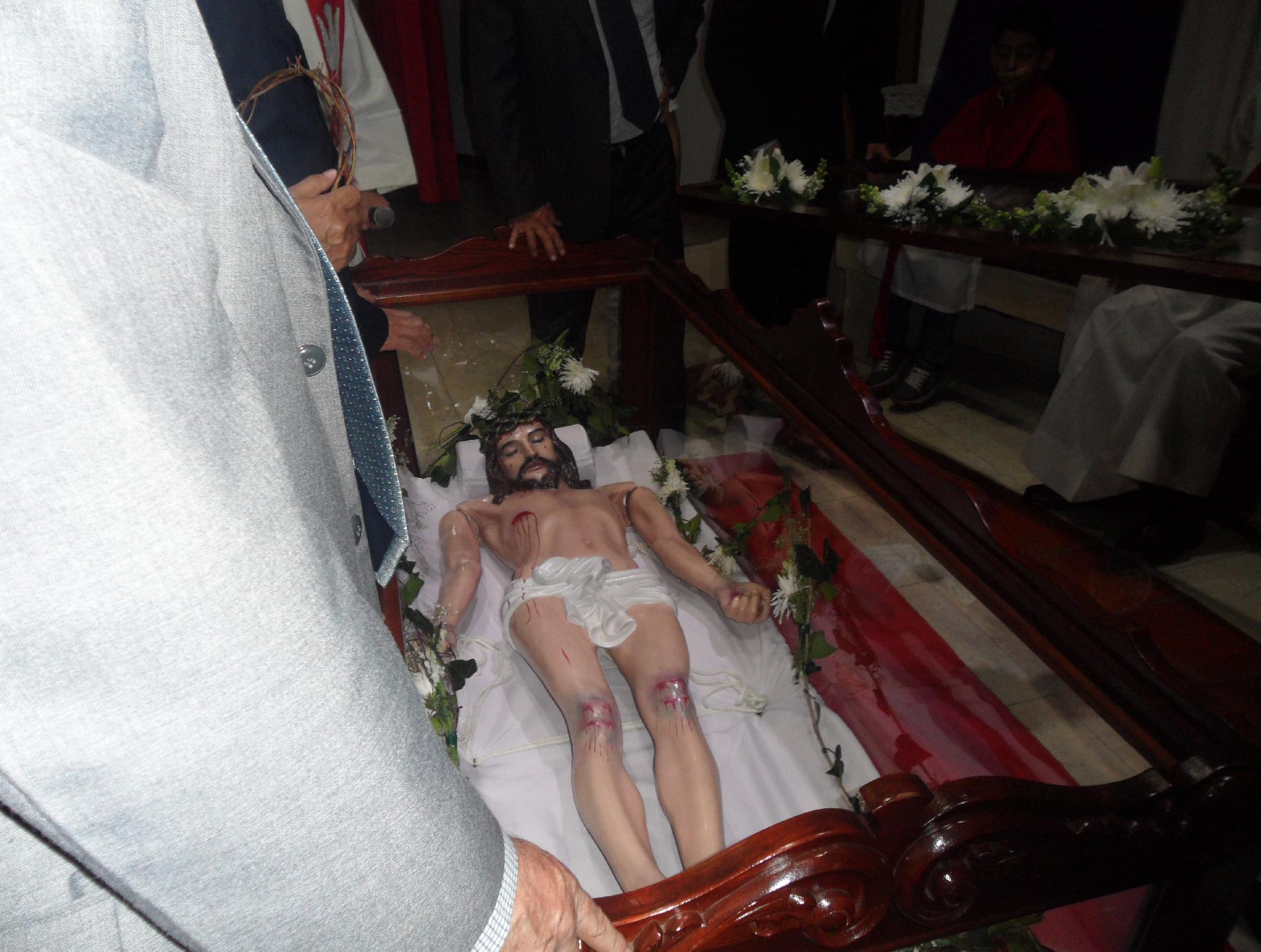 La jornada del Viernes Santo en la parroquia de San Jerónimo Emiliani se vive con gran devoción desde las primeras horas del día hasta entrada la noche. La tarea espiritual comenzó a las 10:00 de la mañana con el Vía Crucis, meditado por las principales calles vecinas al Templo y dirigido por el Padre José Luis Madero. Posteriormente la Liturgia de la muerte del Señor Jesús y el sermón de las siete palabras, meditado por el Párroco, Padre Luis María Carreño, ayudaron para reflexionar en las últimas horas de vida del Divino Salvador.