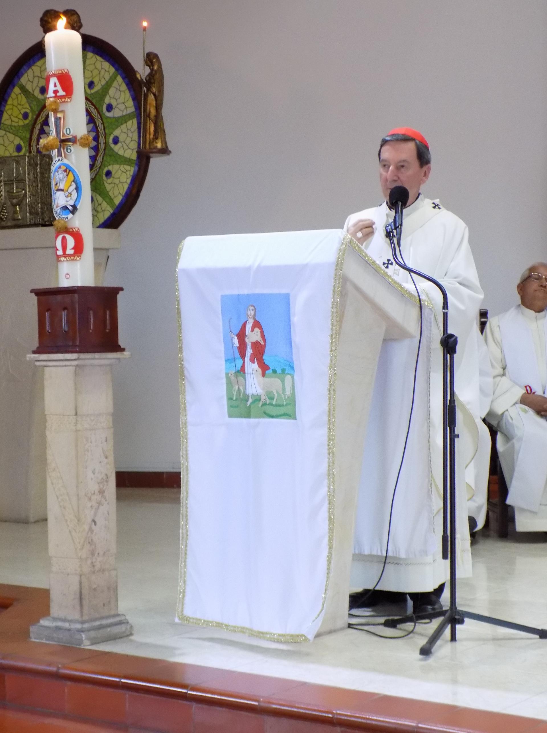 En la Santa Misa de doce del medio día el Arzobispo invitó a la comunidad presente a reflexionar sobre la alegría de Jesucristo Buen Pastor, haciendo referencia en dos puntos: la importancia del sacramento de la Eucaristía y el sacramento de la Reconciliación.