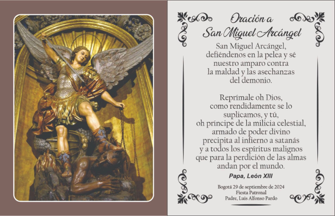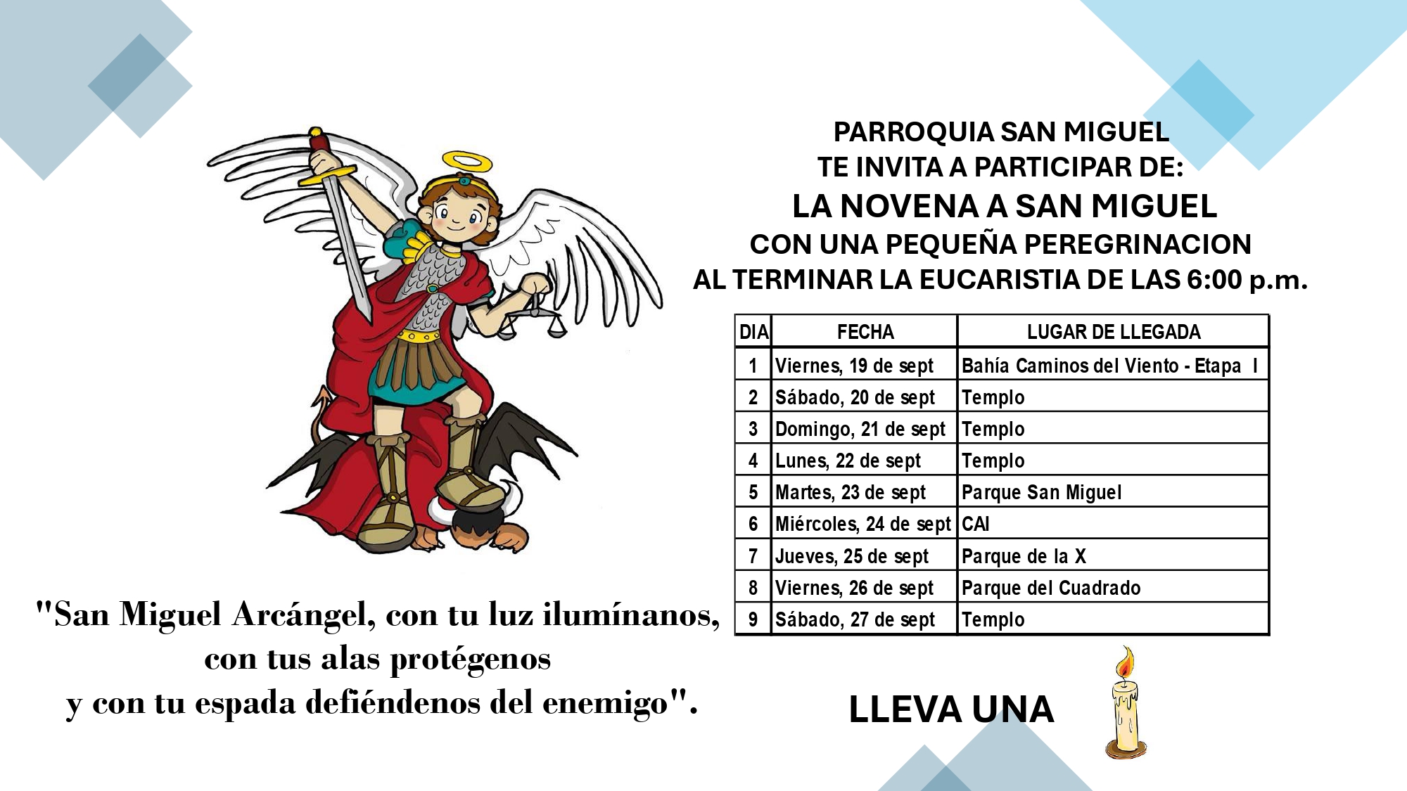 Novena a San Miguel desde el día viernes 19 de septiembre al sábado 27 de septiembre de 2025.