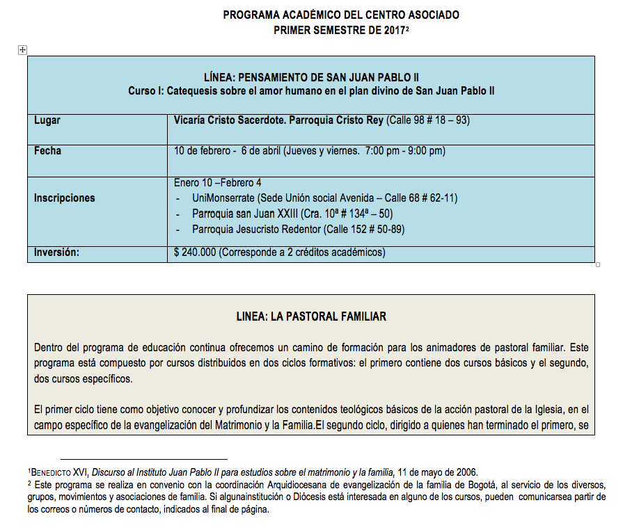 El Centro Asociado es fruto del convenio académico suscrito entre el Pontificio Instituto Juan Pablo II (Roma) y la Fundación Universitaria Unimonserrate (Colombia).