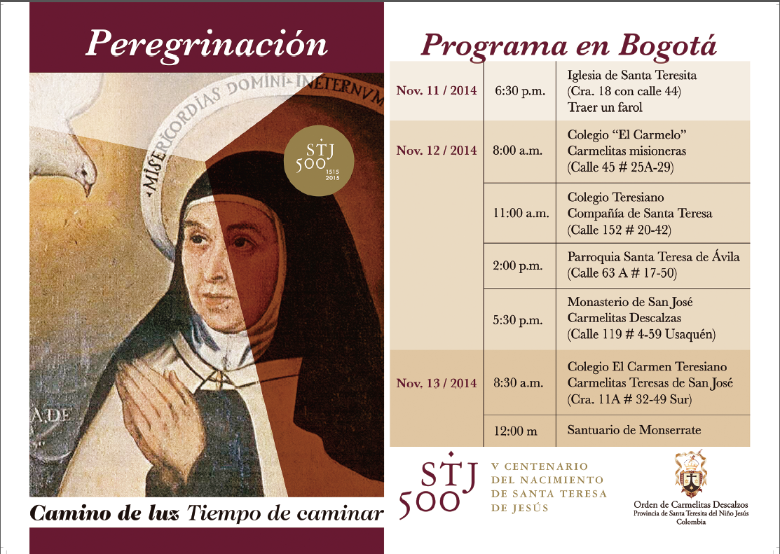 Centro de información Yo quiero Noticias Boletines Eventos Artículos Canonización Mensajes del Señor Cardenal Cartas pastorales Homilías Mensajes La voz del pastor Documentos del Vaticano NoticiasProgramación Visita de la Reliquia de Santa Teresa de Ávila a Bogotá12 de Noviembre de 2014Te invitamos a ver nuestro artículo: Desde España visita de la Reliquia de Santa Teresa de Ávila a Bogotá, haz click aqui. Like 0 Dislike 0 Noticias relacionadas ¡Inscríbete ahora! Informamos ‼️🚨Denunciemos