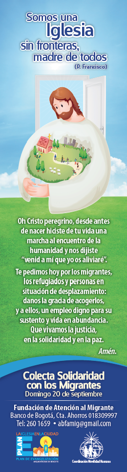 Eucaristía solemne (10:30 en la Catedral Primada de Bogotá, presidida por Mons. Jaime Mancera) | Anunciando y convocando a la semana del Migrante comprendida entre el 13 – 20 de septiembre 2015 |
