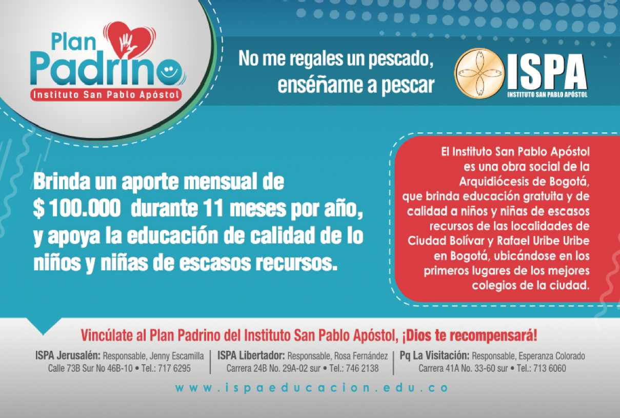 Centro de información Yo quiero Noticias Boletines Eventos Artículos Canonización Mensajes del Señor Cardenal Cartas pastorales Homilías Mensajes La voz del pastor Documentos del Vaticano NoticiasVincúlate al plan padrino27 de Mayo de 2019 Like 0 Dislike 0 Noticias relacionadas Video del papa - noviembre de 2025 La Iglesia Samaritana que abraza a Bogotá #Destacado